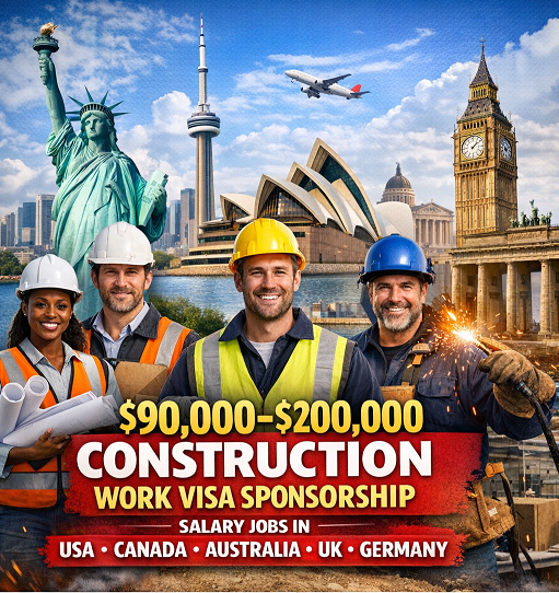 $90,000–$200,000 Construction Work Visa Sponsorship Jobs in 2026 (USA, Canada, Australia, UK & Germany)